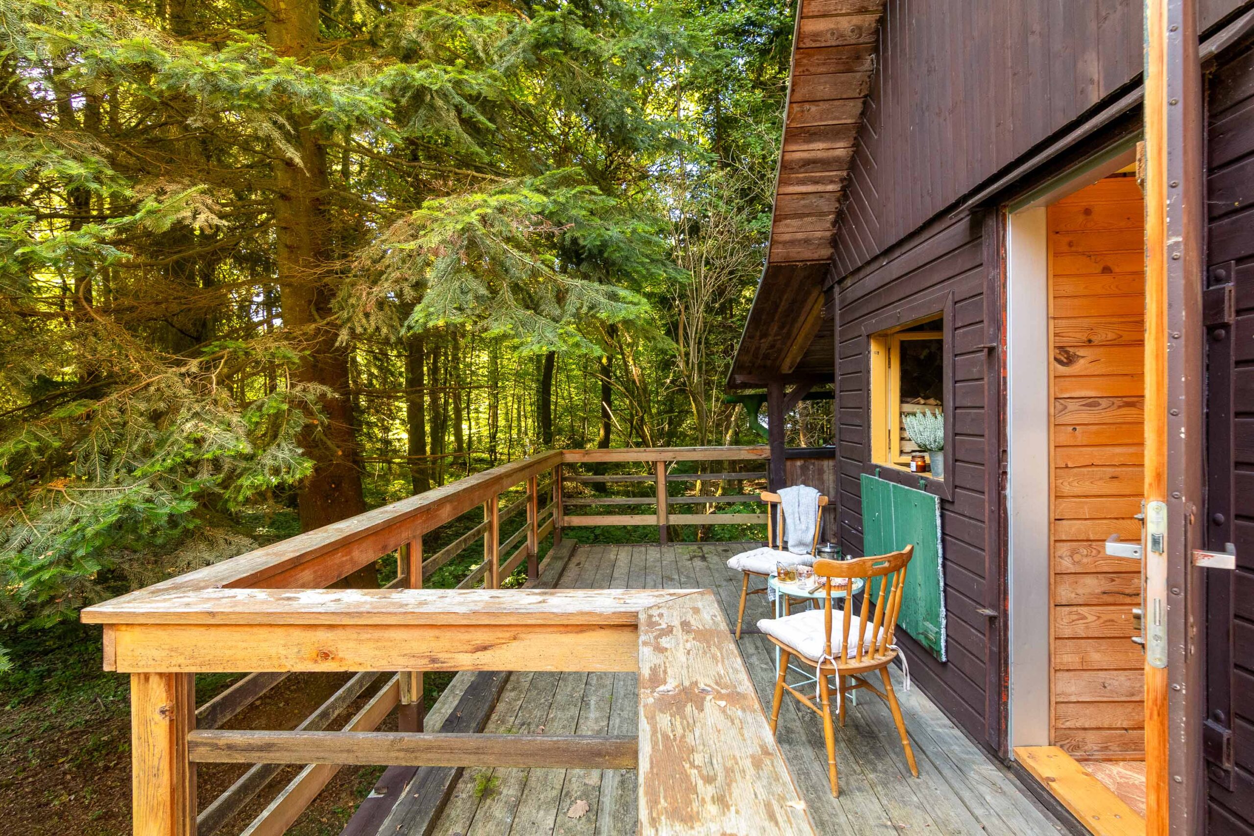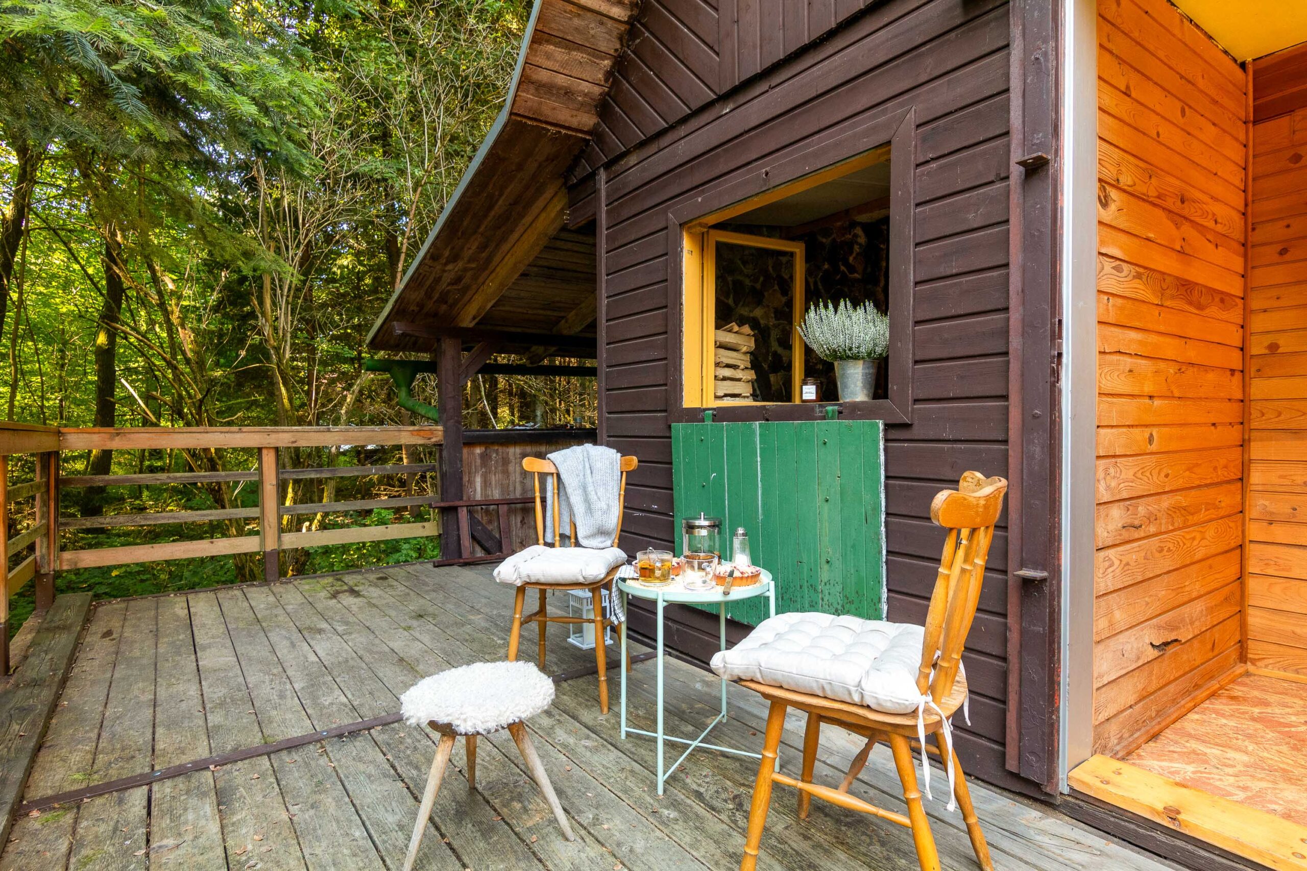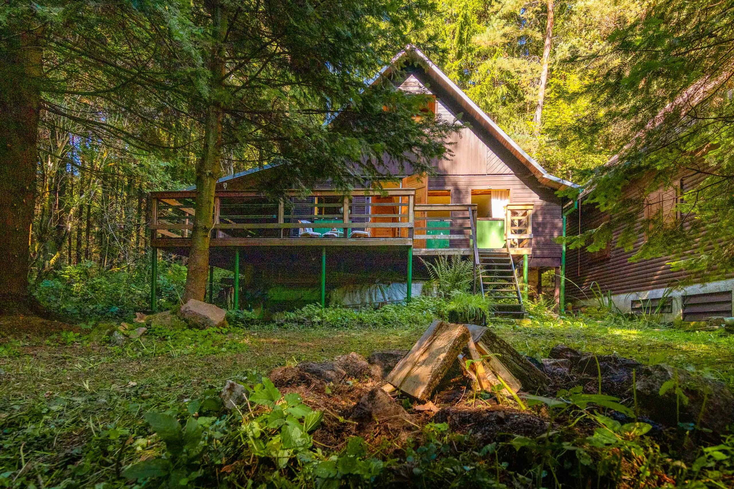 Kousek lesa, terasa s výhledem do zeleně, ranní mlha nad rybníkem a večer vůně dřeva a ohně. Tohle není chata pro každého – ale pro toho, kdo hledá klid, autenticitu a opravdovost.
